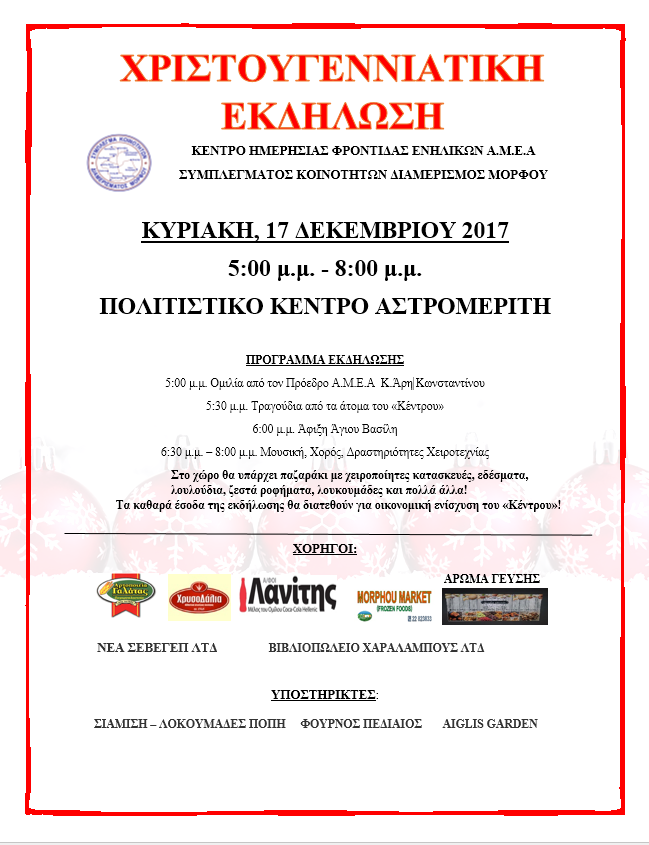 Χριστουγεννιάτικη Εκδήλωση Α.Μ.Ε.Α (Αστρομερίτης 17/12/2017)